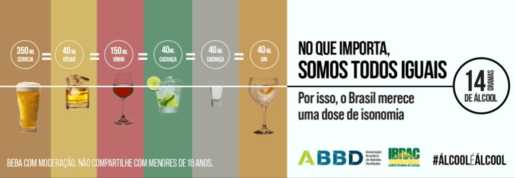 Claro, o objetivo de toda a campanha é taxar a bebida de acordo com a quantidade de álcool, já que a legislação atual é desproporcional nesse sentido, adotando uma visão de que destilados são “ruins” e precisam ser sobretaxados, enquanto que fermentados são “bons”. O segundo argumento da campanha é terminar com esse “preconceito”.