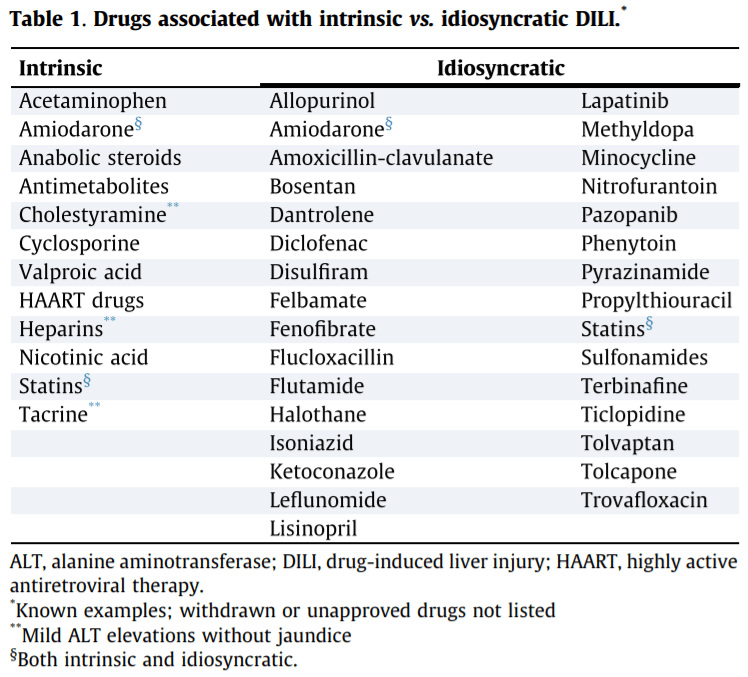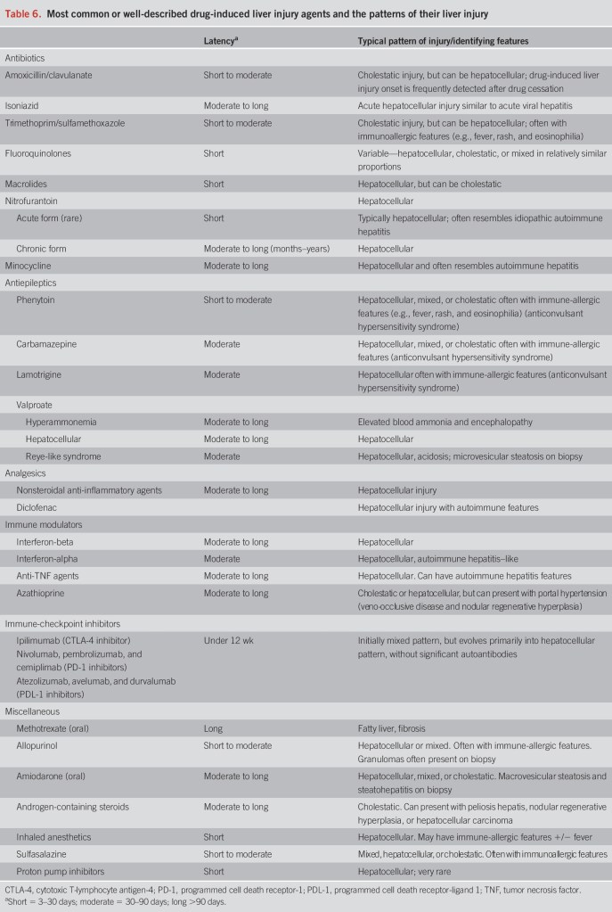 - Chalasani, Naga P. MD, FACG1; Maddur, Haripriya MD2; Russo, Mark W. MD, MPH, FACG3; Wong, Robert J. MD, MS, FACG (GRADE Methodologist)4; Reddy, K. Rajender MD, FACG5, on behalf of the Practice Parameters Committee of the American College of Gastroenterology ACG Clinical Guideline: Diagnosis and Management of Idiosyncratic Drug-Induced Liver Injury, The American Journal of Gastroenterology: May 2021 – Volume 116 – Issue 5 – p 878-898 doi: 10.14309/ajg.0000000000001259