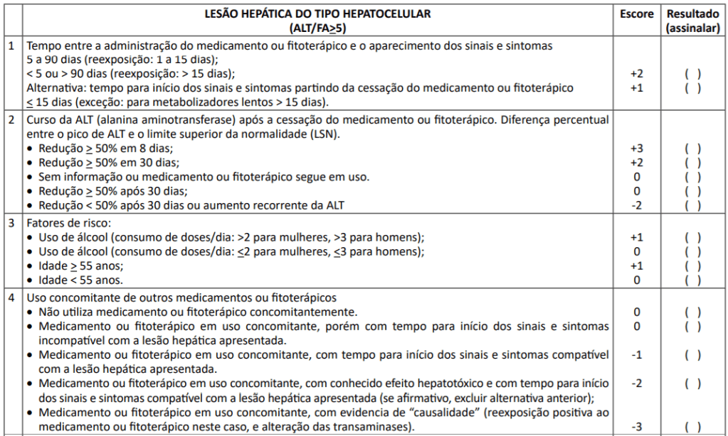 Mas se mesmo assim o diagnóstico estiver difícil, é possível utilizar o RUCAM (Russel Uclaf Causality Assessment Method) para avaliar a probabilidade de que o medicamento suspeito realmente esteja causando a lesão no fígado.