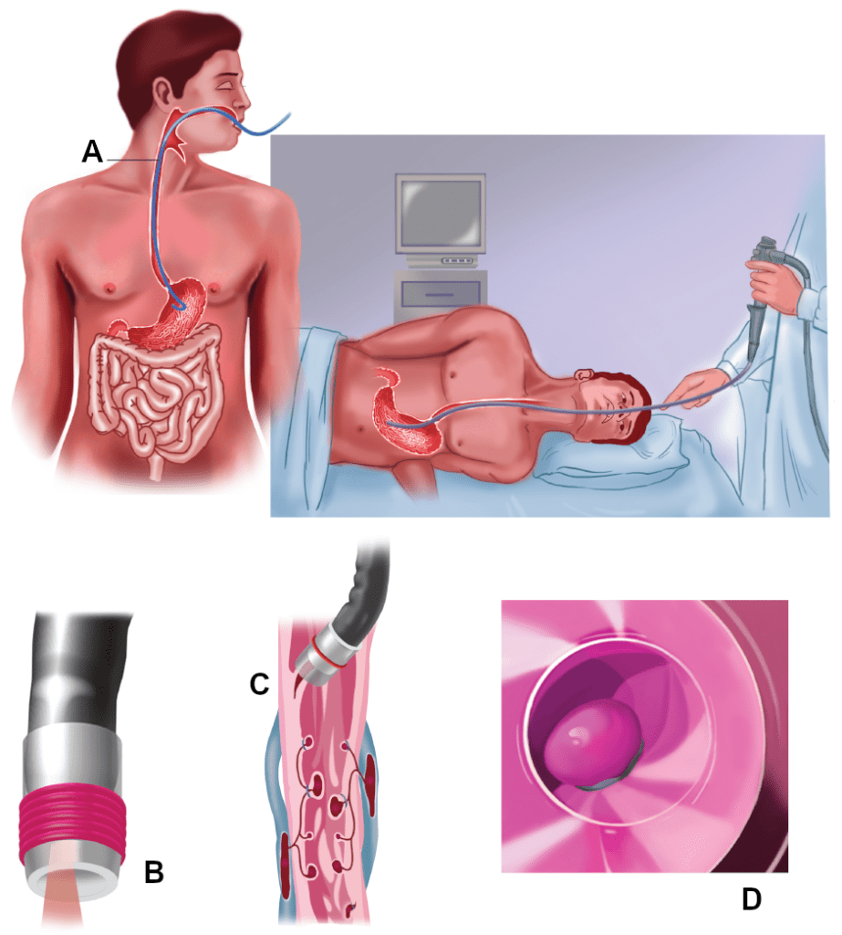Descrito pela primeira vez em 1983 e adaptado da já consagrada ligadura elástica de hemorroidas, a ideia é bem simples e facilmente acessível: basta um aparelho de endoscopia padrão (disponível em praticamente qualquer cidade) equipado com um “kit”