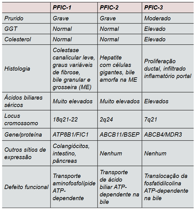 - PFIC tipo 3: Causada por mutações no gene ABCB4, que codifica uma proteína necessária para a formação de bile, resultando em acúmulo de bile no fígado.