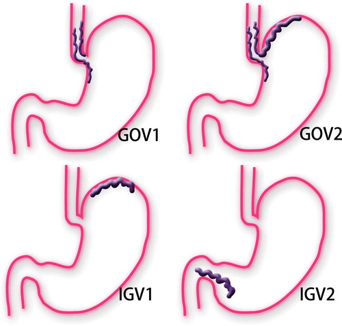 - varizes gástricas: apesar da falta de dados, os beta-bloqueadores não seletivos são uma opção aceitável para a profilaxia primária; em pacientes com alto risco de sangramento e condições técnicas favoráveis, a obliteração transvenosa retrógrada com balão ocluído (BRTO) é uma opção pouco disponível; varizes GOV1 devem ser tratadas como varizes esofágicas; o sangramento por varizes GOV2 e IGV deve ser tratado preferencialmente com escleroterapia com cianoacrilato e com beta-bloqueadores assim que possível para profilaxia secundária; TIPS é uma opção em sangramento de varizes gástricas refratário ao tratamento endoscópico